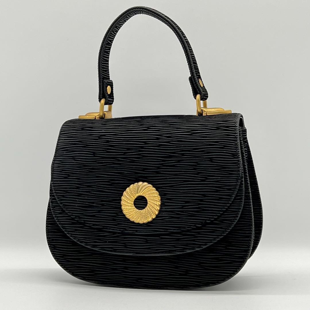 - 【美品】ハンドバッグ トートバッグ トップハンドル フォーマル ビンテージ レザー ゴールド金具 レディース ブラック AG950122B