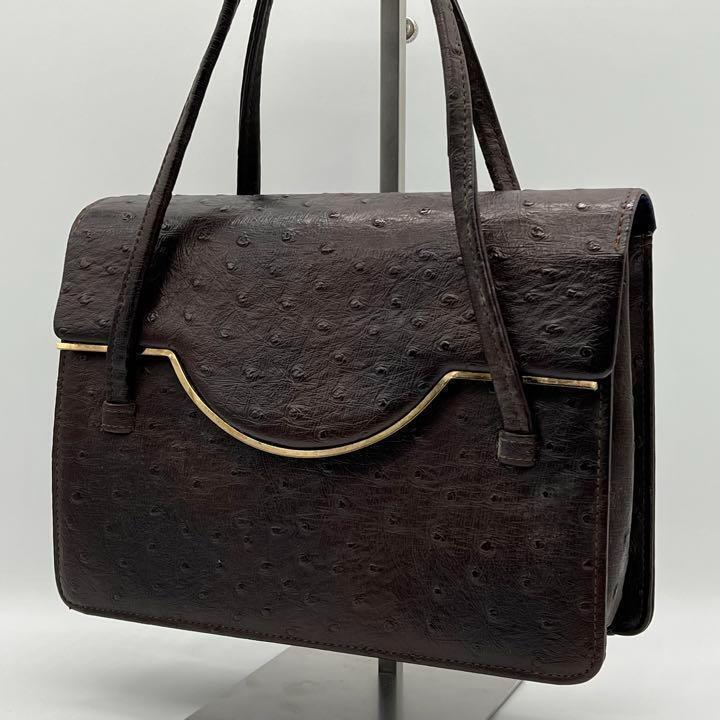 > 【美品】OSTRICH オーストリッチ ダチョウ 鴕鳥 ハンドバッグ ビンテージ フォーマル 通勤 通学 レディース ブラウン BF141219D