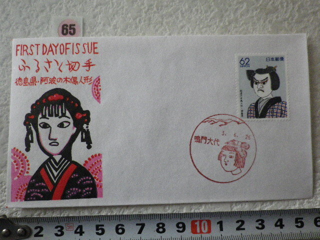 - FDC ふるさと切手 阿波の木偶人形 1貼1消 解説書有 松屋●65●同梱大歓迎