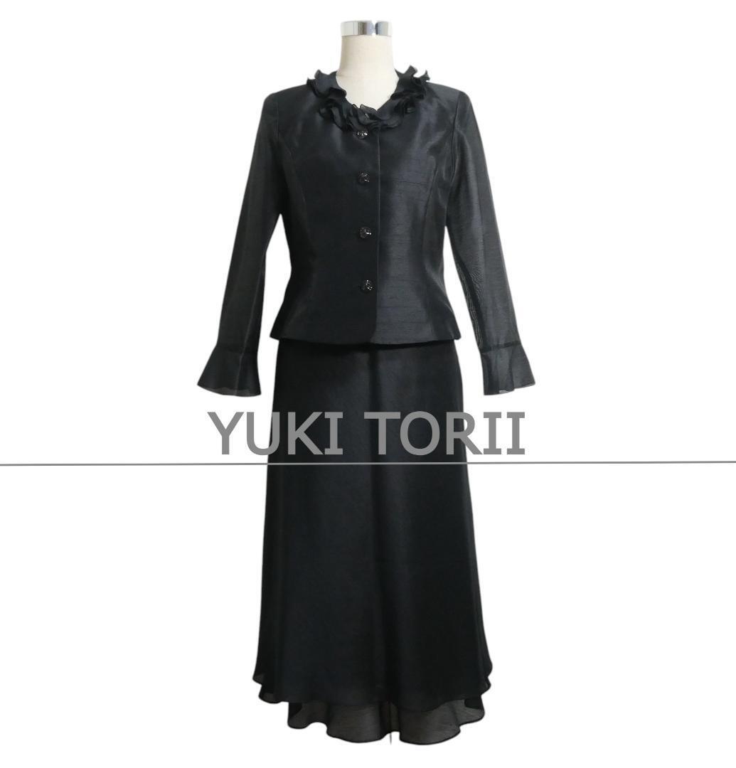 > 美品 YUKI TORII ユキトリイ サイズ9 フリル シングル ジャケット× マキシ ロングスカート セットアップ スーツ 黒 ブラック