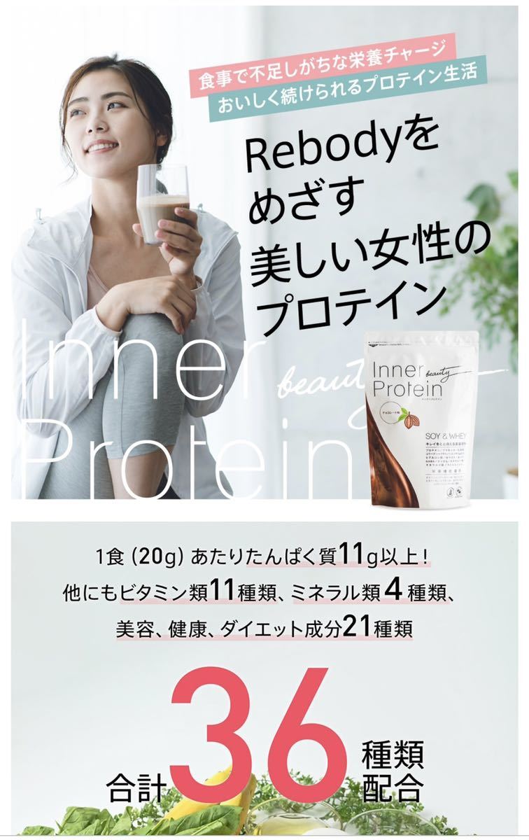 > プロテイン インナープロテイン 女性用 1袋350g WPI 国内生産 ホエイプロテイン ソイプロテイン 美容 ダイエット成分36種類 低糖質