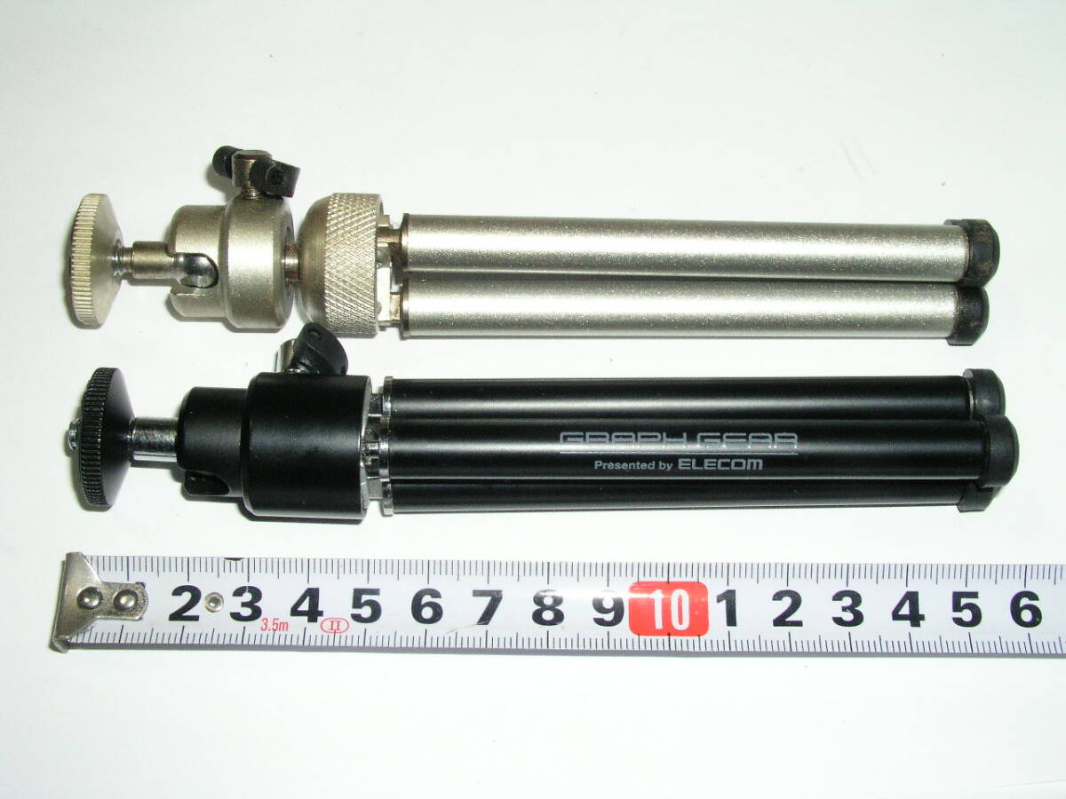 > 7341★★ 自由雲台付き卓上ミニ三脚、シルバー(3段)とブラック(2段)型違い 2脚で ★