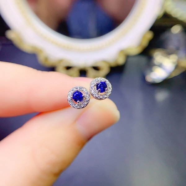《証明書付き》天然サファイアピアス 925スターリングシルバー シルクラウンドピアス