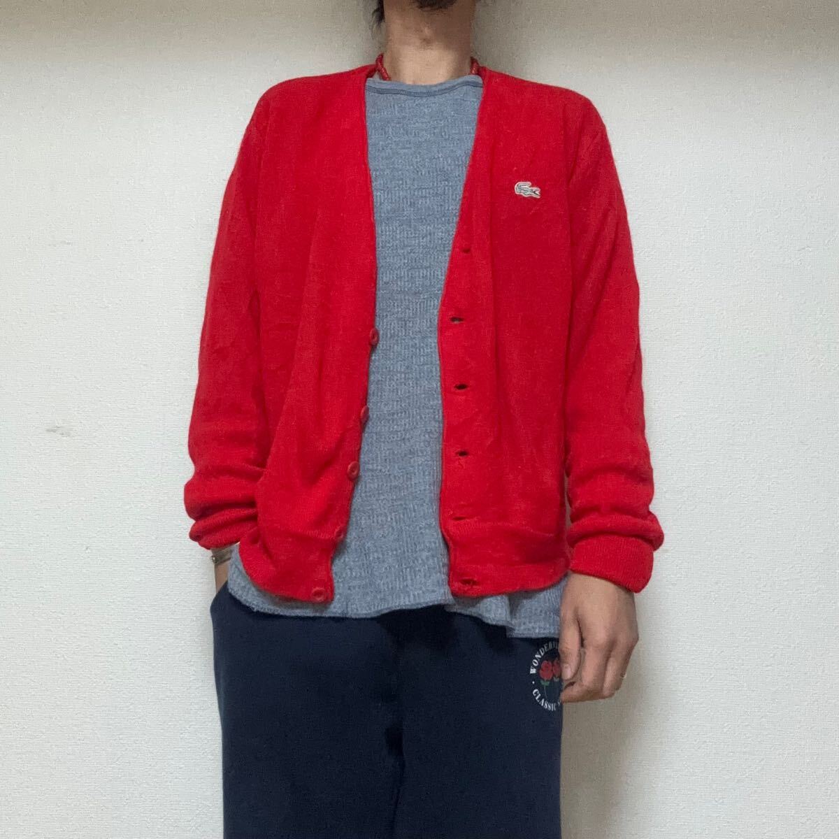- ビンテージ80sラコステ CHEMISE LACOSTEアクリル ニットカーディガンMスペイン製