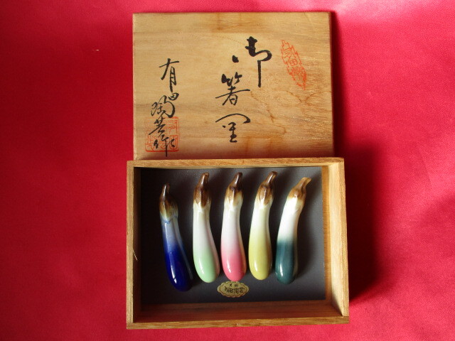 - 有田焼 なす・ナス・茄子形 箸置 5客セット 有田陶芸 共箱 未使用品