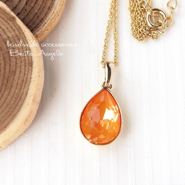 > ◇◇+angelo+スワロフスキー 4320のネックレス(n-056) Cマンゴーイグナイト S ※爪なし 一粒 ドロップ オレンジ デザイン石座