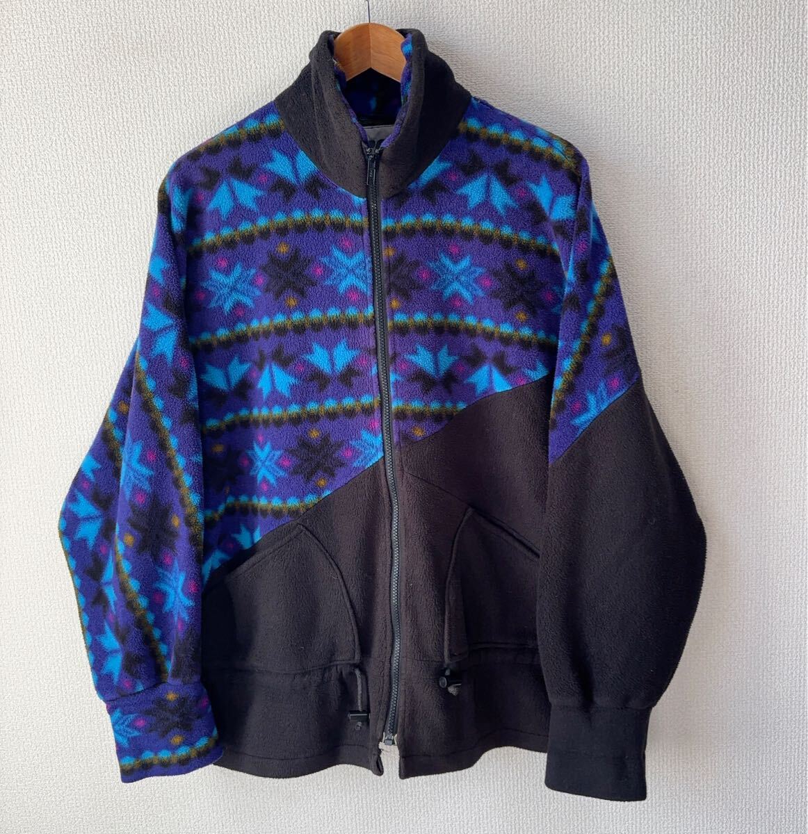 - 90s USA製 KAROB フリース ジャケット L アメリカ製 ブラック 雪柄 切替