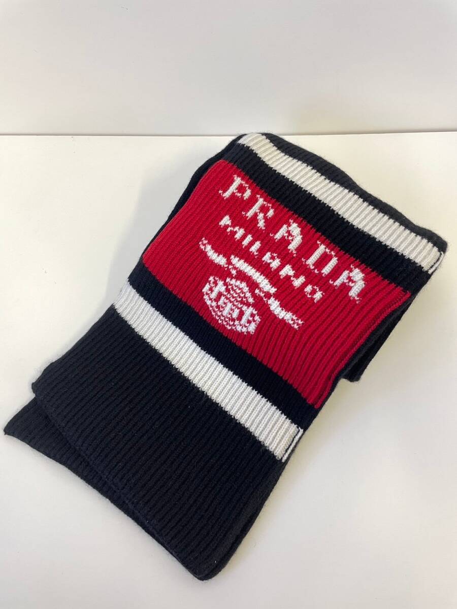 - 極美品★PRADA プラダ★UMS418 S212 ラインカラー切替ロゴカシミヤマフラー