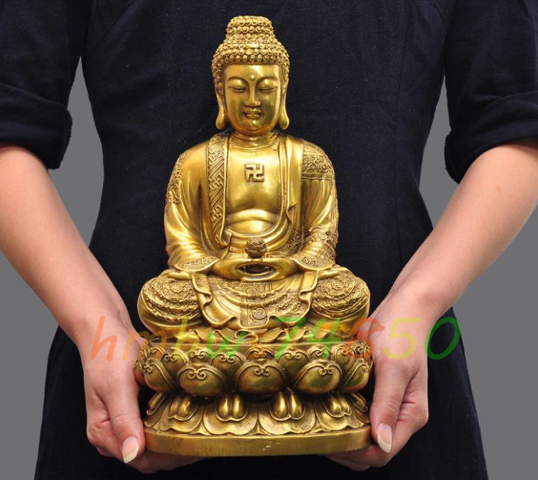 - 「密教法具 寺院用仏具」釈迦如来仏像 真鍮製 仏教芸術品 高さ30cm