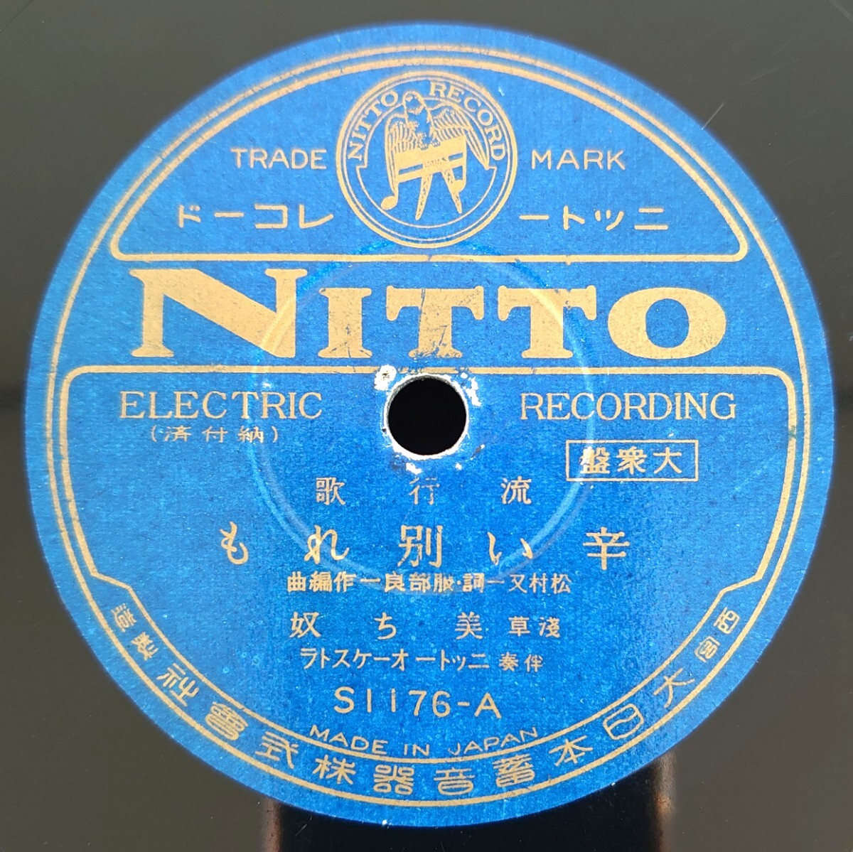- 【蓄音器用SP盤レコード】NITTO S1176-AB 流行歌/辛い別れも 淺草 美ち奴/戀は悲しや-恋は悲しや 松島詩子