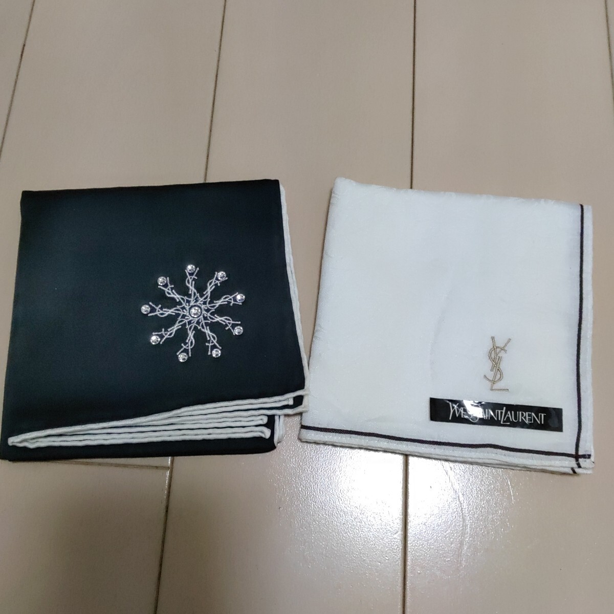 - イブサンローラン ハンカチ ロゴ刺繍+ラインストーン 総柄 冠婚葬祭