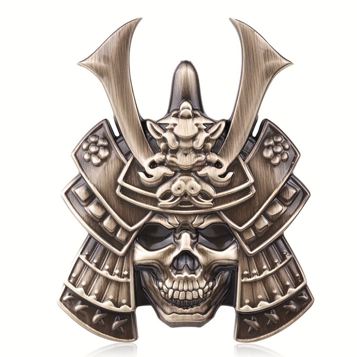 > エンブレム ドクロ 甲冑 おしゃれ 侍 金属 ステッカー 立体 ブロンズ 茶色 7cm 車用 がいこつ ホラー ロゴ バイク 外装 シール t4328