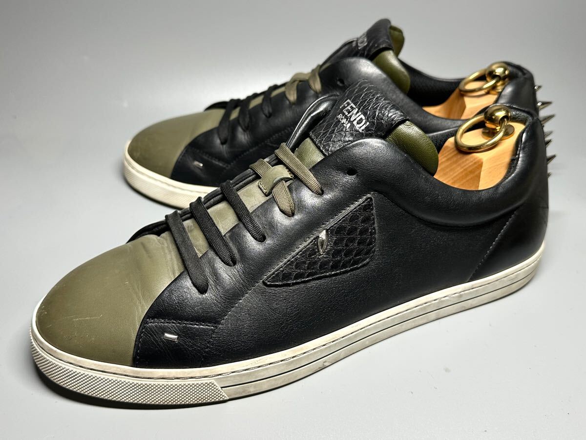 - 【即決】イタリア製 FENDI フェンディ メンズ 9 27.5cm程度 レザースニーカー カーキ 黒 オシャレ 顔 人気 レア 高級 靴 くつ 1074