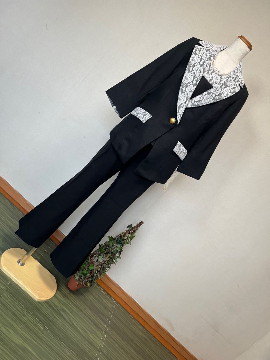 > 4-4新品ブラックフォーマルパンツスーツ3点セレモニースーツセットアップロングテーラードジャケット+キャミソール+パンツ23号23ABT黒3L4L