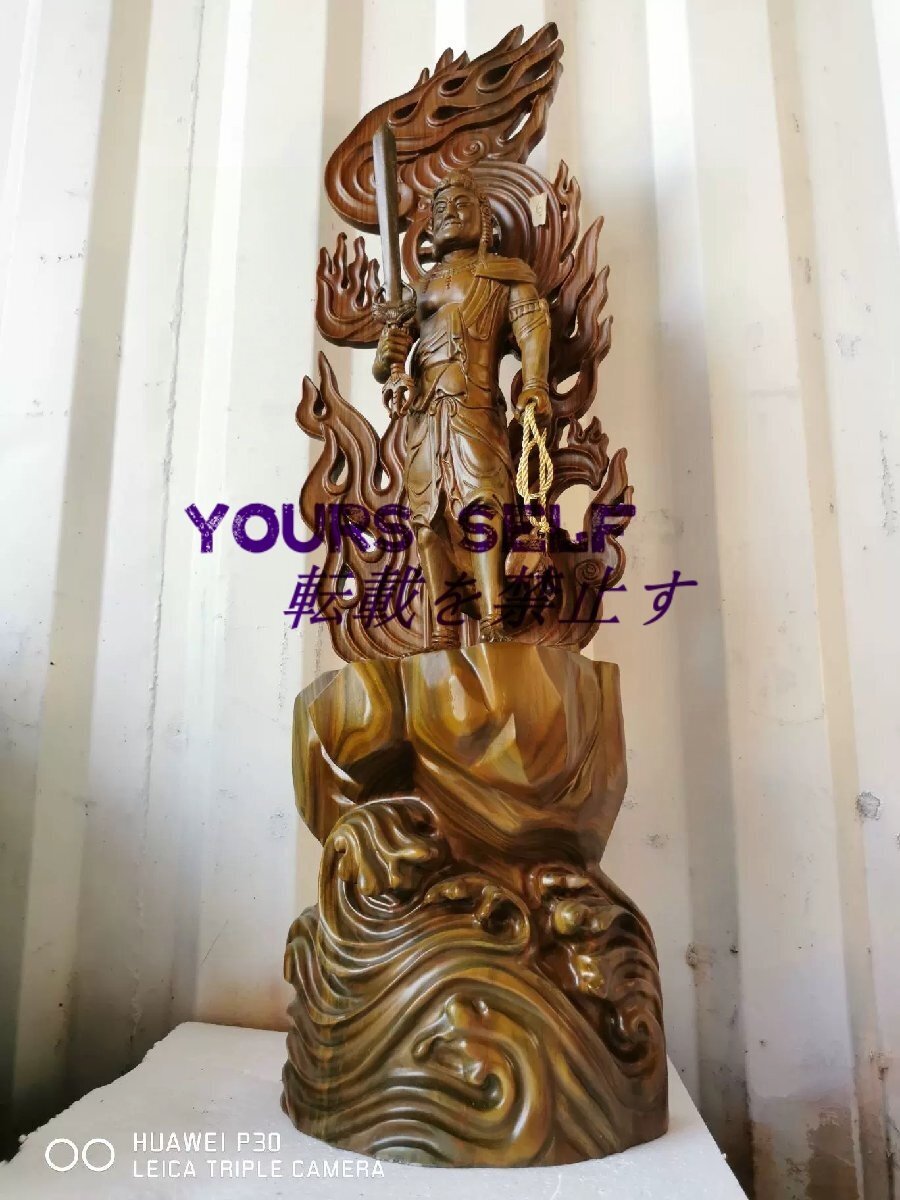 - 仏像 木彫り 不動明王 高級天然木彫り◆厄除け・開運・守護・繁盛・ご利益 ・彫刻仏像・手彫り仏像・木製仏像 (高さ68cm)