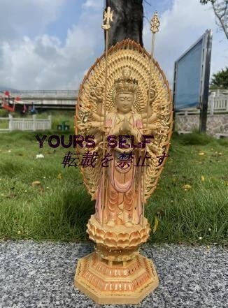 - 仏像 千手観音菩薩立像 お盆用品 仏具 お彼岸 仏像 千手観音菩薩像 千手観音像 木製 木彫り 総高43cm