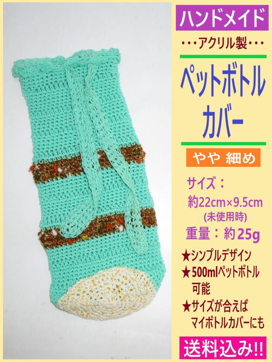 - ハンドメイド ペットボトル カバー 1点 I 小さめ やや細め 手編み アクリル 目印 500ml可能 ボトル ホルダー マイボトル 水筒 袋 ボーダー