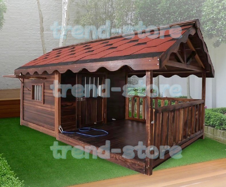 - ドッグハウス 室外 ドアと窓付きの犬用犬小屋 ホームタウン ドッグハウス テラス 屋外 木製 大型犬用 XL 犬小屋