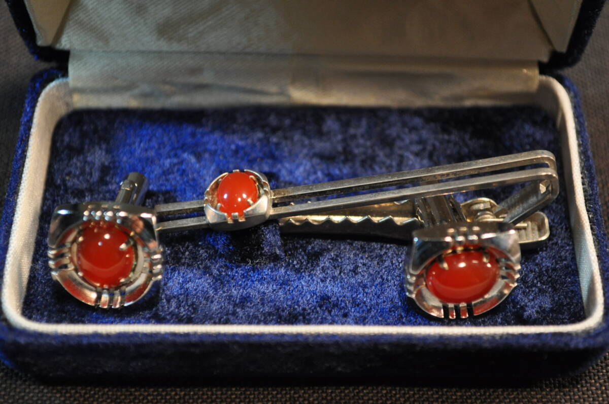 - 175 瑪瑙 カフリンク&ネクタイピン カフスボタン&タイピン セット 別珍元箱