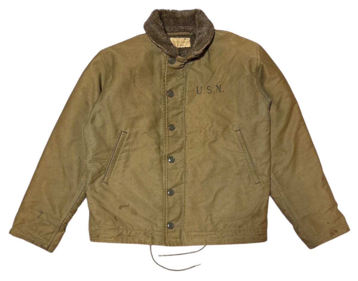 - 40s 40's ヴィンテージ 実物 オリジナル 米軍 US NAVY N1 デッキ ジャケット Contract NXsx88197 カーキ 40