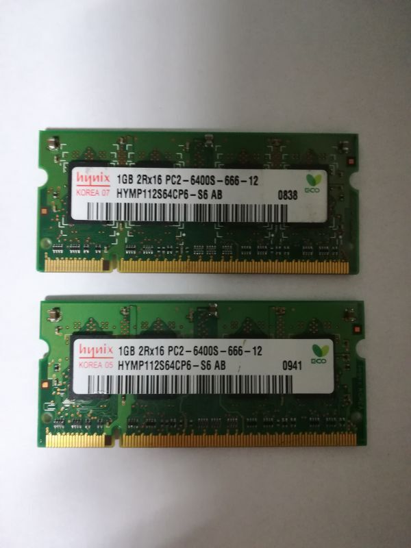 - 中古品Hynixメモリ2R×16 PC2-6400S-666-12★1G×2枚 計2GB