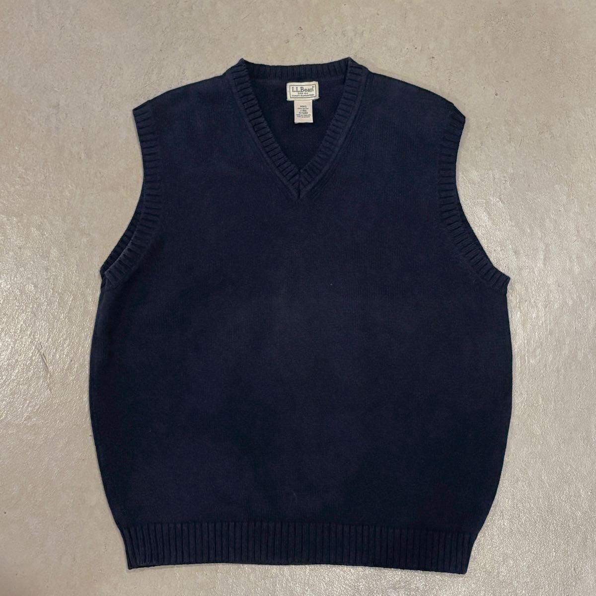 - 【00s】L.L.Bean エルエルビーン コットン ニットベスト セーター Vネック メンズ L 紺/Navy 無地 プルオーバー アメカジ 古着 USED 正規