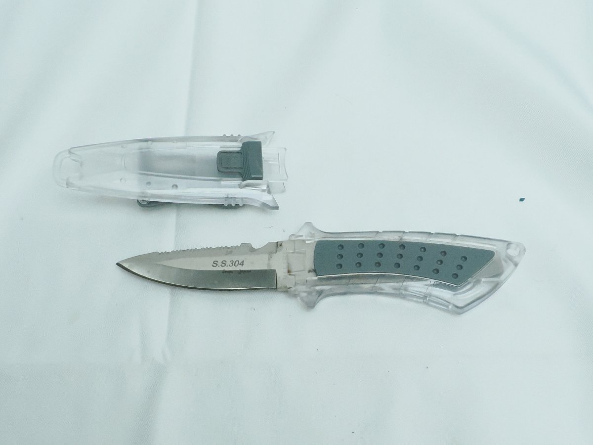 > USED TUSA ツサ ダイバーナイフ ステンレス クリップ式 全長:16cm 刃渡り:6cm ランク:AA ポスト投函 スキューバダイビング用品 [C31-62969]
