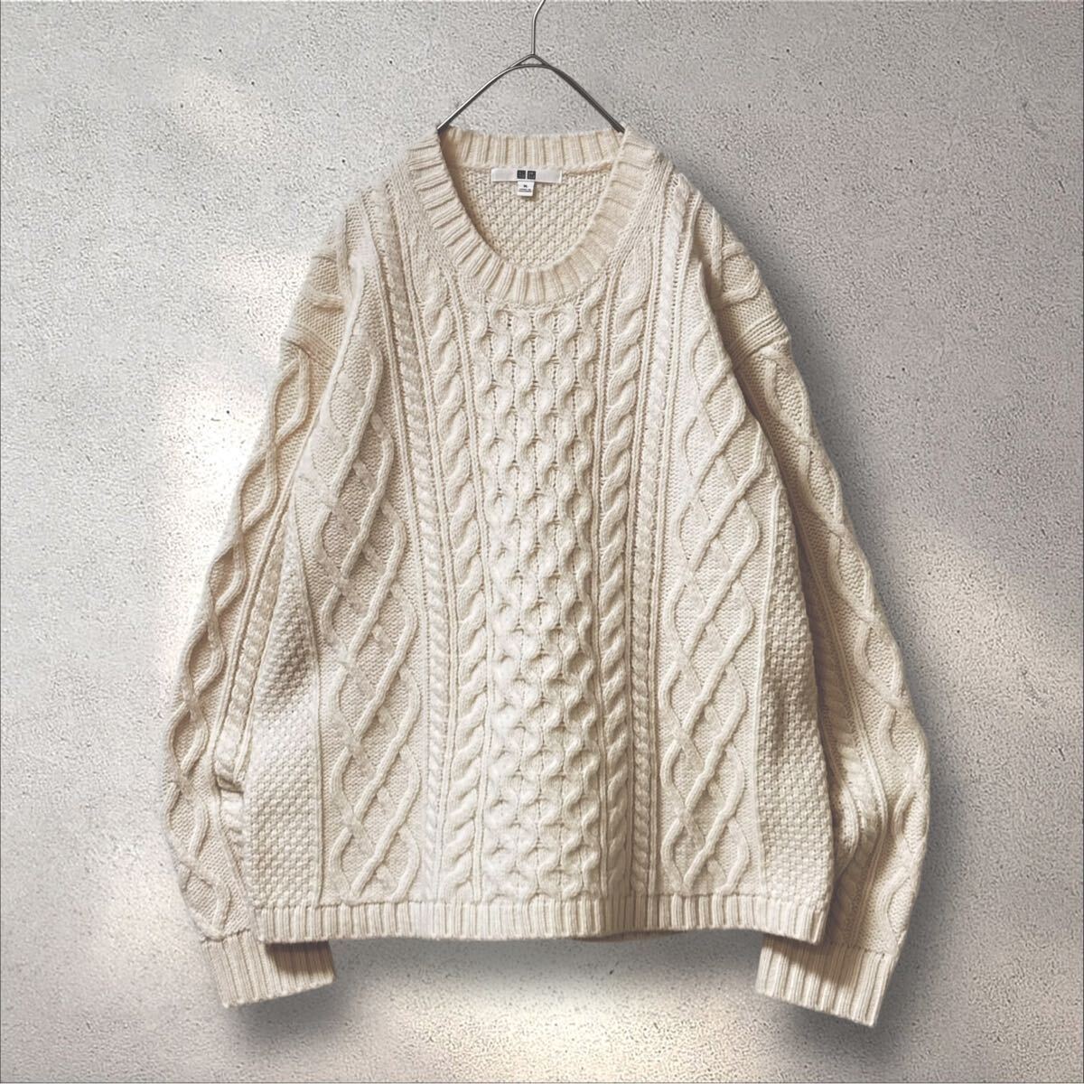 - 1571 ★美品★ UNIQLO ユニクロ ケーブル クルーネックセーター XL 長袖ニット アイボリー プルオーバー 秋冬 トップス ケーブルニット