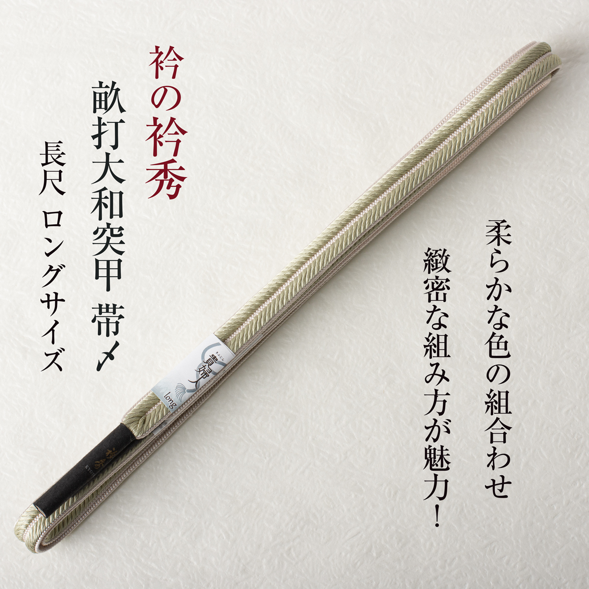 - 【衿秀の帯締め 貴婦人】 帯〆 畝打大和突甲(薄萌葱×薄桜鼠)LL 長尺 ロングサイズ 切り房 日本製