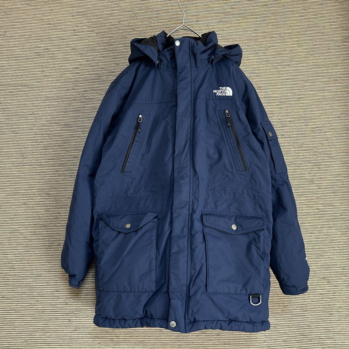 > ノースフェイス ダウンジャケット モッズコート ネイビー 子供150ドライベントB2 古着 入手困難 激レア希少 人気 ワンポイント 刺繍