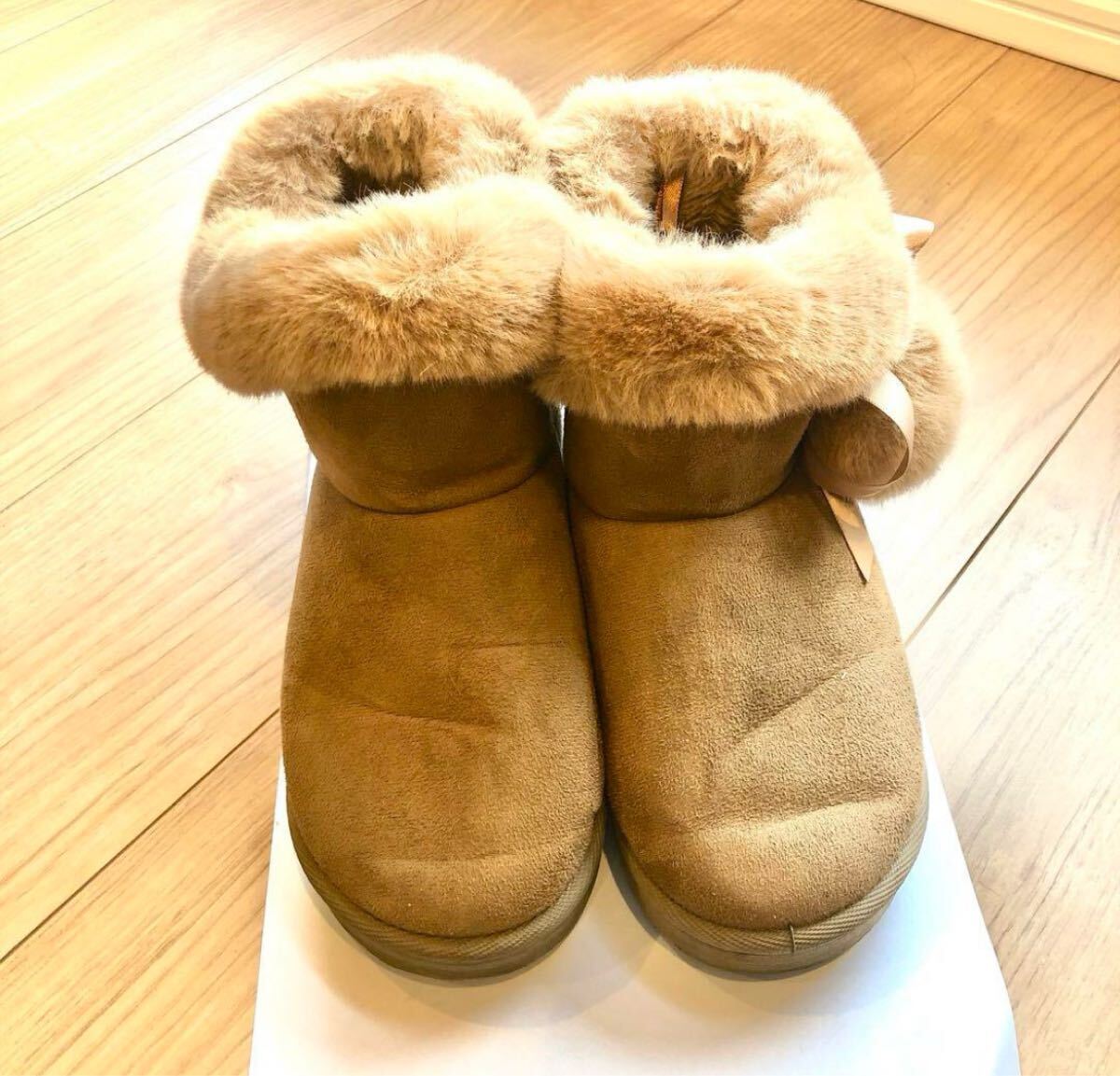 - 美品 ムートン風ブーツ ボアショートブーツ ベージュ 子供 キッズ 軽くて履きやすい防寒ブーツ サイズ 22センチ