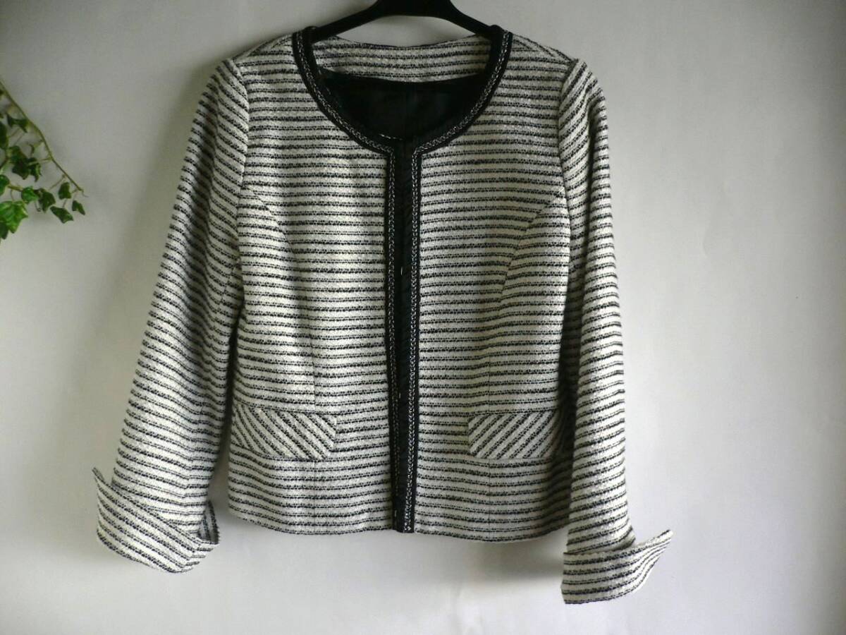 - ベージュ黒 Мノーカラーツイードジャケット 卒業式入学式フォーマルセレモニー