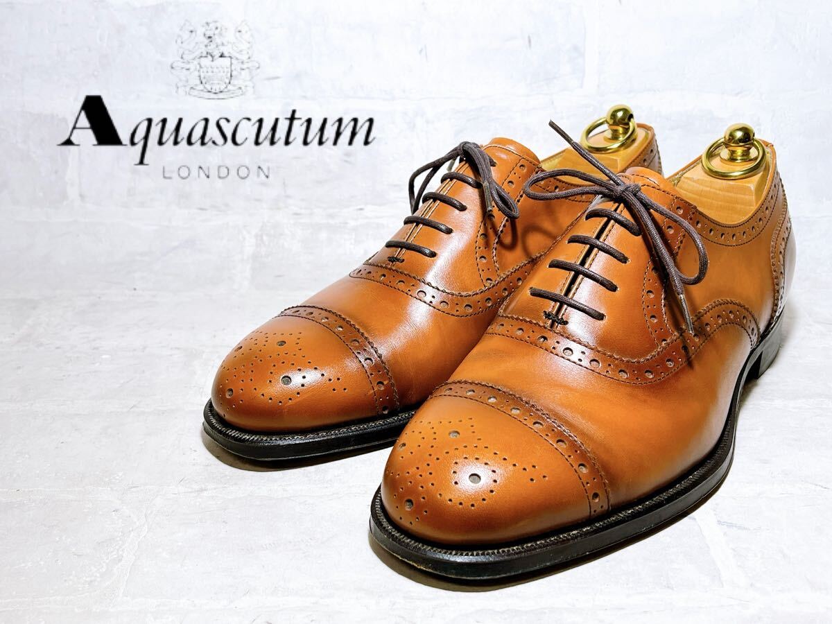- 【極美品】Aquascutum アクアスキュータム 上質 ビジネスシューズ グッドイヤー製法 レザーソール 茶 25.5cm
