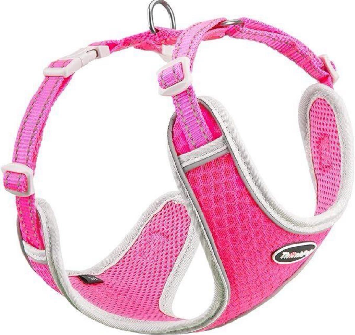 > 犬ハーネス 引っ張り防止 胴輪 負担が少ない 首輪 反射首輪 犬用 猫用 Mサイズ ピンク メッシュ生地 柔らかい 通気性 軽量