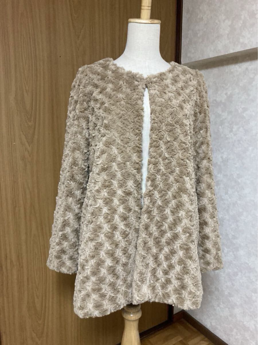 - デュラス DURAS ノーカラー ファーコート キャメル モコモコ フリーサイズ