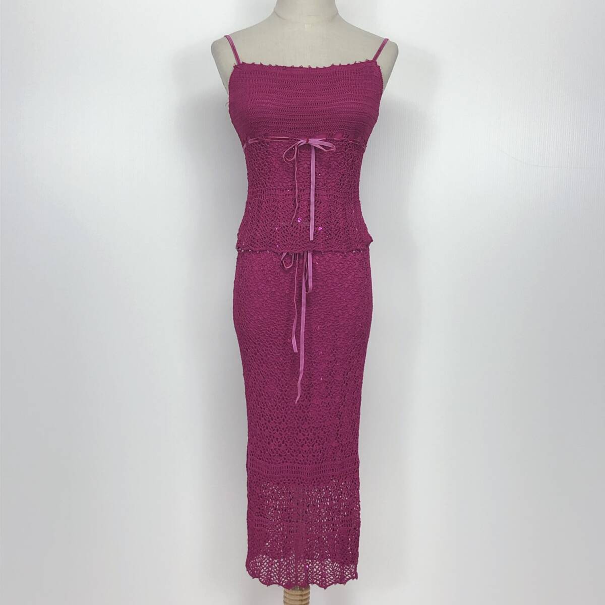 > YX1117 OASISレディースセットアップ袖無し薄手伸縮性クリーニングタグ付き 裏地 パープル 紫 ゴージャス パーティースタイル セクシー 夏
