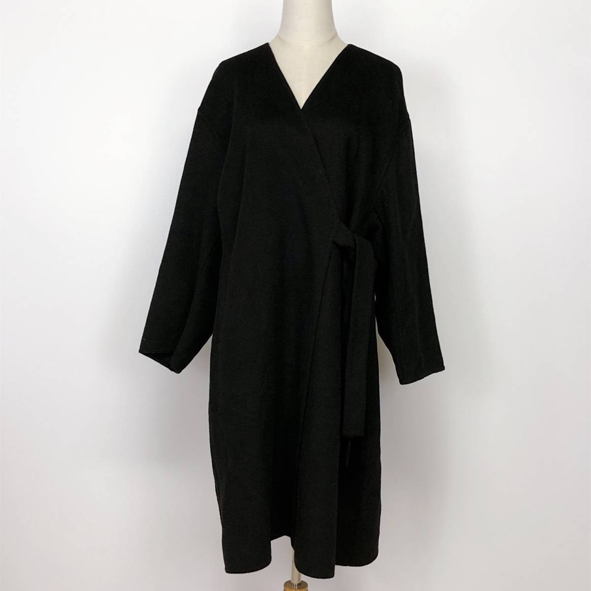 > YX115 UNIQLO(ユニクロ)レディース アウター 長袖 丸首 サイドポケット M ブラック 黒 無地 毛素材含 シック 秋冬 ウールブレンドコート