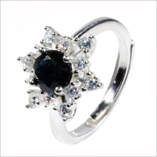 自然な黒サファイアリング、5×5mm、925スターリングシルバー