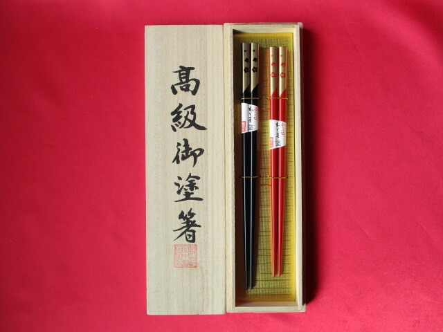 - 輪島塗 本うるし 天然うるし 金彩 梅図 夫婦 ペア 箸 2膳セット 未使用品