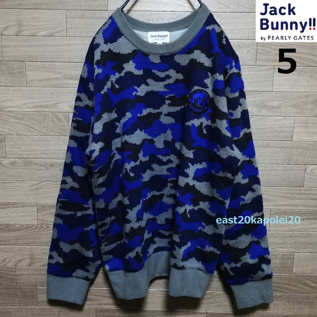 > Jack Bunny by PEARLYGATES ジャックバニー パーリーゲイツ ゴルフ メンズ カモ 柄 総柄 ウール混 裏地付き ニット セーター 5 送料無料