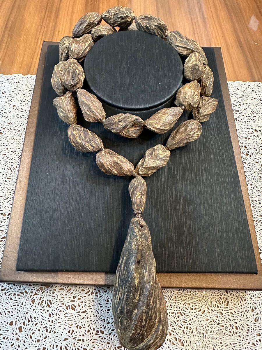 - S-006-4 文玩 天然野生 海南虫漏 老料 沈香 ネックレス