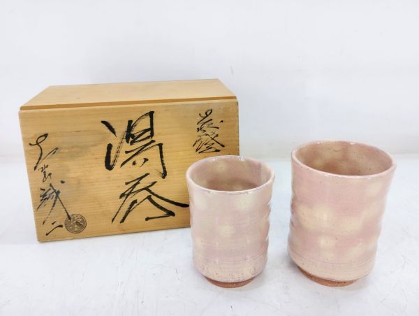 - サ/ 萩焼 組湯呑 大野誠二 夫婦湯 湯のみ 茶器 茶道具 共箱 /HY-0585