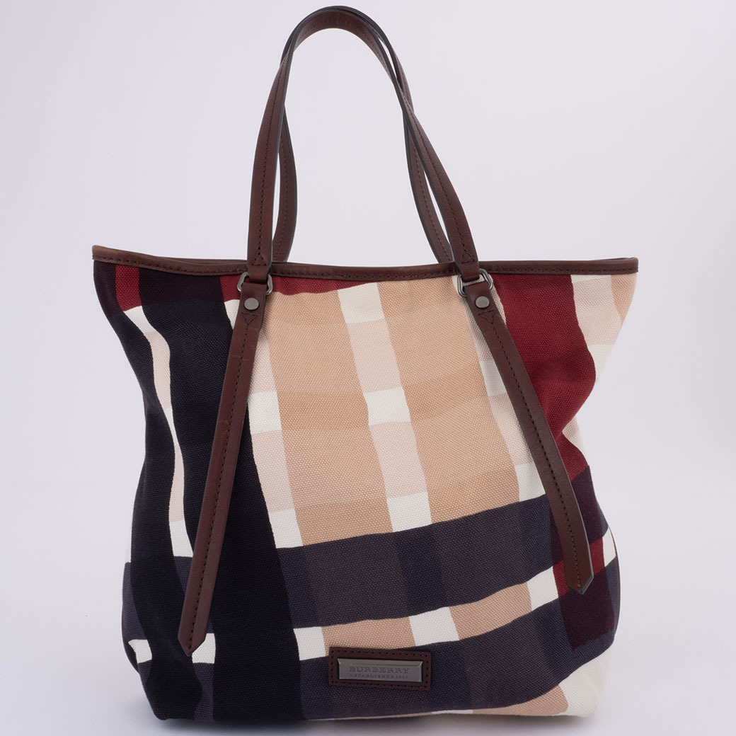 > バーバリー キャンバス トートバッグ マルチカラー レディース レザー チェック エスタブリッシュド BURBERRY 中古