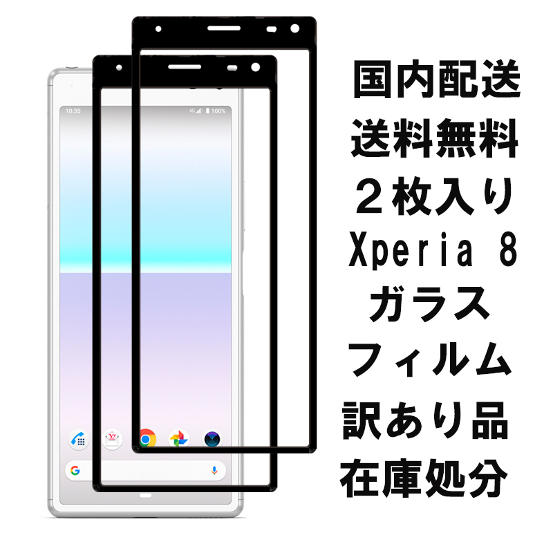 > 訳あり品 2枚黒 Xperia 8 ガラス フィルム SOV42 SO-02M 902SO 液晶 画面 保護 頑丈 シール シート カバー Glass Film スクリーン 9H