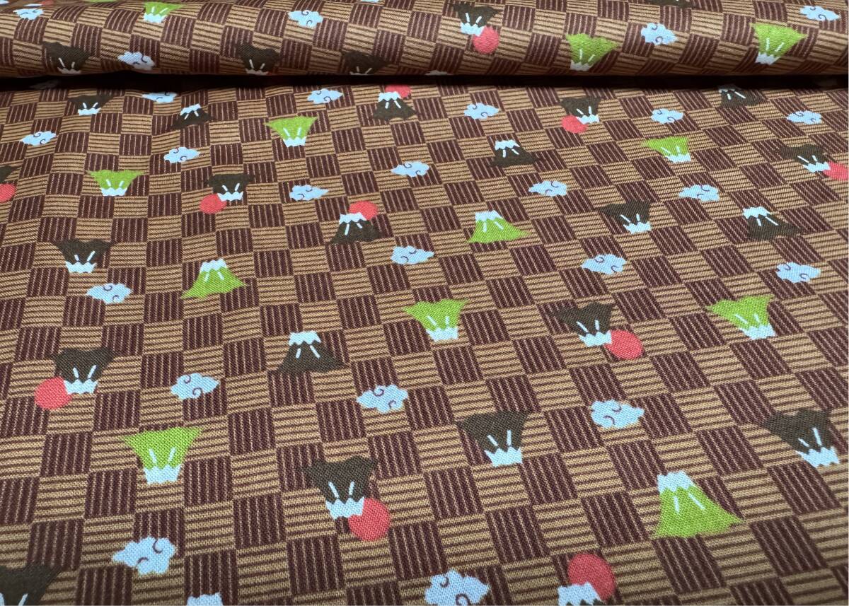 > 5m スケア 110×500cm ブラウン 綿100% 富士山 市松 / 生地 はぎれ 和柄 小紋 WAGARA