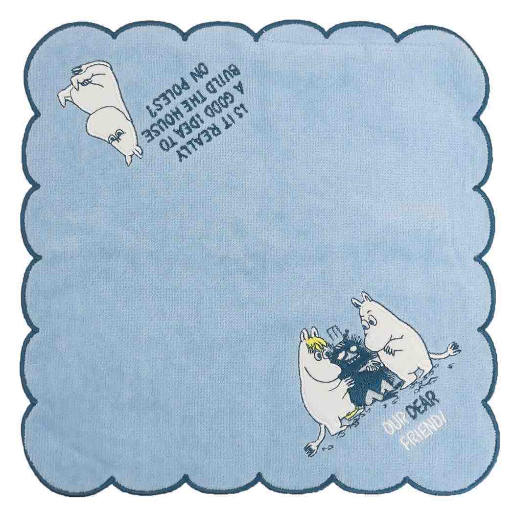 - ムーミン ミニタオル シャーリングハンカチタオル オーガニックコットン スカラップブルー 北欧 丸眞 汗拭きタオル キャラクター