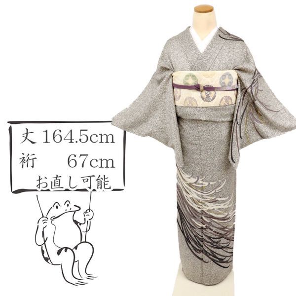 > 【訪問着】 長尺 『細合 俊男』 揺れる菊の花模様 白黒叩染め 袷正絹着物 HB4-1