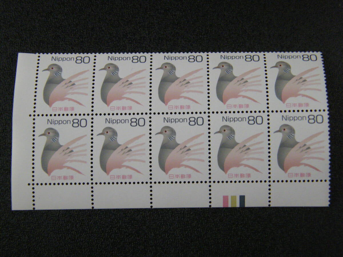 - キジバト 80円 カラーマーク下 10枚ブロック 未使用 郵便事業会社(CM付)