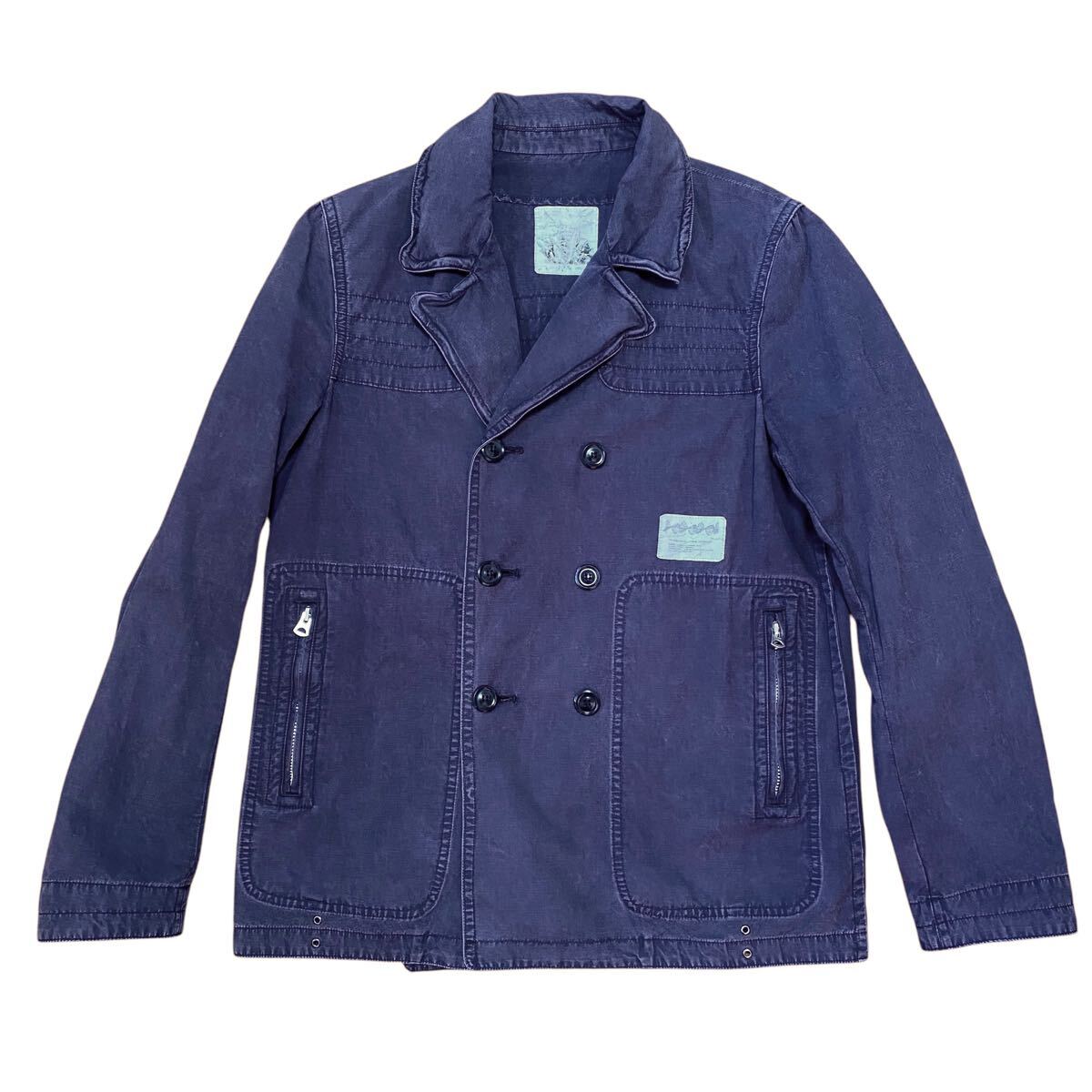 - 【アンダーカバー UNDERCOVERISM 2011SS UNDERMAN期 ウォッシュ加工 Pコート ブルゾン メンズ2 ネイビー パープル artscabut期 5685】