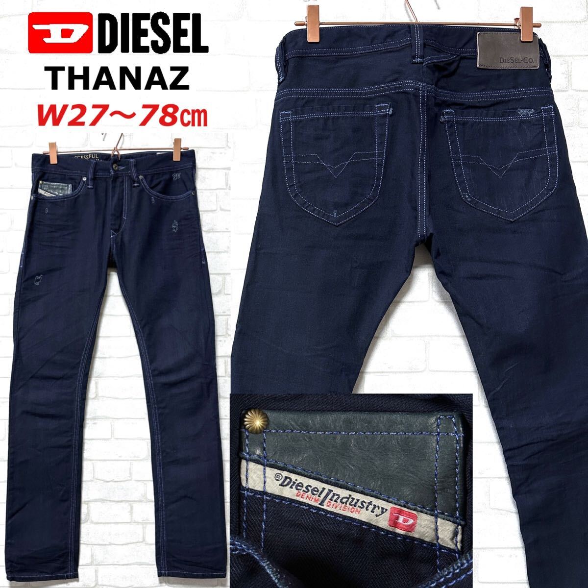 - DIESEL ディーゼル THANAZ 濃紺 牛革 ダメージ加工 デニムパンツ